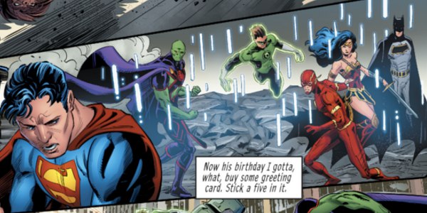 Впрочем, один непонятный момент скорее всего объяснён не будет, а именно – странный реткон, случившийся в данном номере. Всё дело в том, что впервые за полтора года DC вспомнили про Марсианского Охотника, и он появился в комиксе про Лигу. Странность заключается в том, что его появление – флэшбек ещё к тем временам, когда Хэл Джордан был единственным Фонарём в «оригинальном составе Лиги». Слабо верится, что это просто «по пути» вброшенный реткон, но с хронологией событий в Rebirth всё и так достаточно сложно.